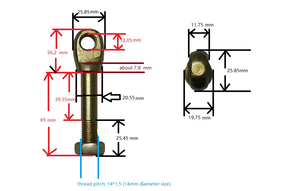 CJ750 Long sidecar rod screw (total 101mm, body 65mm)